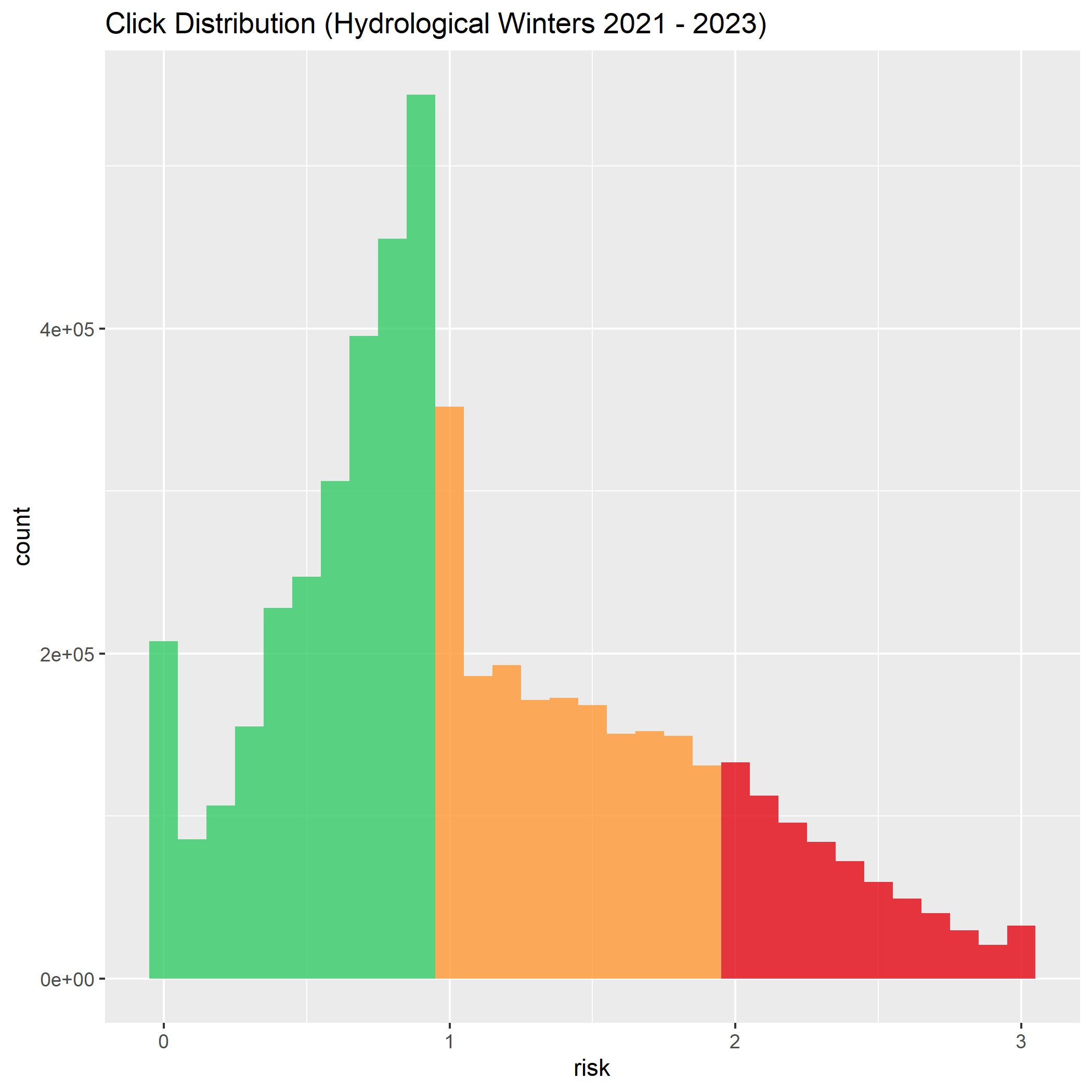 Von Interesse ist auch, ob das Publikum - wie erhofft - vorwiegend auf grüne Routen klickt. Wie die nachfolgende Grafik zeigt, ist dies durchaus der Fall: